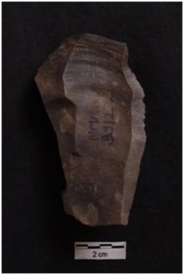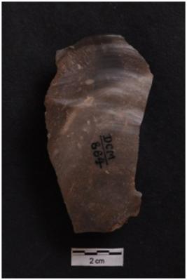 | Description / विवरण | Flake, diffused bulb on ventral surface, another flake scar on dorsal surface, ripple marks visible. |