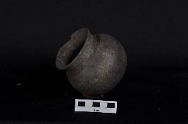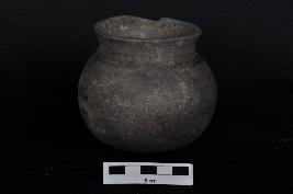 | Description / विवरण | Carinated pot with round base of black ware. |