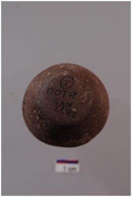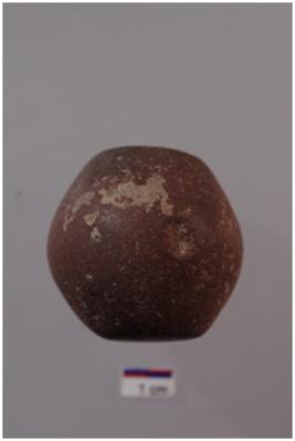 | Description / विवरण | A stone weight, truncated baronial outline shape, red color. |