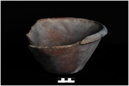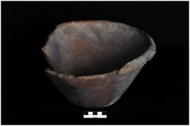 | Description / विवरण | A basin with flaring side, flat base and a flattened rim which is decorated with cut marks on the outer margin. |