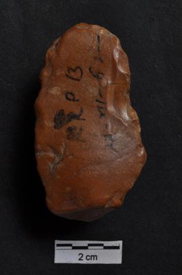 | Description / विवरण | Flake, with a vertical ridge on dorsal surface, diffused bulb with striking platform at proximal end. |
