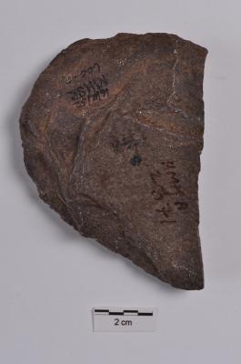 | Description / विवरण | An unidentified stone tool probably used as a cleaver, it is semi circular in shape and has no retouches. |