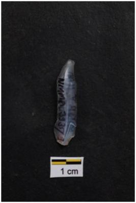 | Description / विवरण | Blade, diffused bulb with striking platform at proximal end, pointed distal end, a ridge on dorsal surface. |