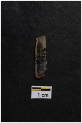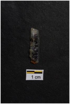 | Description / विवरण | Blade, parallel sided, retouches on both working edges, a ridge on dorsal surface. |