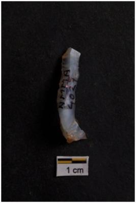 | Description / विवरण | Blade, prominent bulb with striking platform at proximal end, a ridge on dorsal surface. |