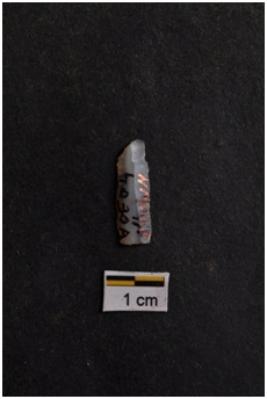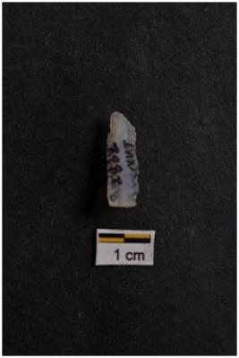 | Description / विवरण | Blade, parallel sided, a ridge on dorsal surface, use-ware marks on both working edges. |