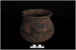 | Description / विवरण | A globular pot with flaring mouth and round bottom. It is decorated with cut marks on the neck portion. |