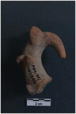 | Description / विवरण | A terracotta object of long neck animal figurine, body is broken, short ears, long tapering mouth, applique andpinched ornament on the neck. Red in colour, handmade medium coarse fabric, well fired. |