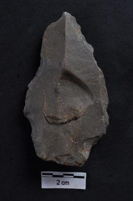 | Description / विवरण | Flake with pointed distal end, diffused bulb on ventral surface, a ridge on dorsal surface. |