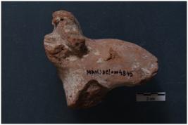 | Description / विवरण | A terracotta object of Ram,animal figurine. Almost complete,curved, lime coated incised slanting lines at the rear, incisions also at the head. Red colour, medium coarse fabric, handmade, well fired. |