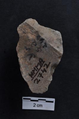 | Description / विवरण | Triangular shaped flake, intersecting two ridges on dorsal surface. |
