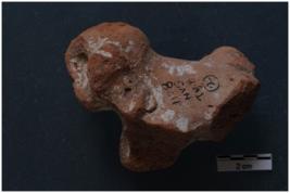 | Description / विवरण | A terracotta object of animal figurine. Small in sized, four legged, lime coased long dropping ears, short mouth, eyes shown by depression probably a dog. Red in colour, well fired |