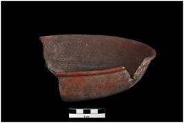 | Description / विवरण | A pan with flattish base and with slightly out-curved rim it is provided with perforation on the base. It is devoid of slip or wash or decoration. . |
