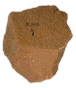 | Description / विवरण | Cleaver made on thick flake having functional edge, obtained by alternative flaking technique. It has blunt butt end and thin flat functional serrated edge. Thick mid portion with flake scars on the dorsal side and broad flake scars on ventral side. |