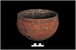 | Description / विवरण | A big and deep bowl with a convex profile and slightly out-curved rim and round base. It is painted on the outer surface in the form of oblique lines in opposite direction set in horizontal bands. |