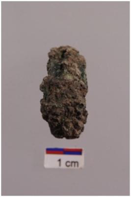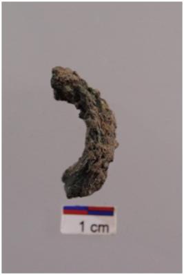| Description / विवरण | Fragment of a ring, circular cross section, heavily rusted surface. |