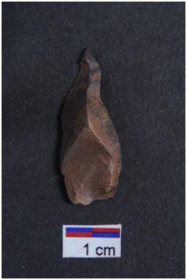 | Description / विवरण | Pointed flake, prominent bulb on ventral surface, a ridge on dorsal surface, pointed distal end, |