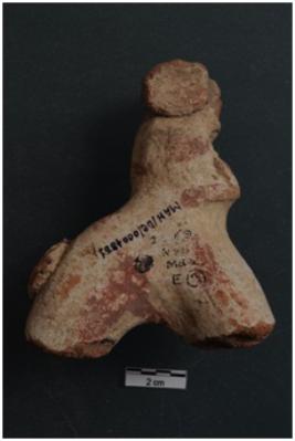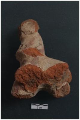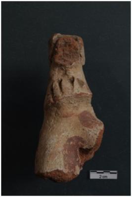 | Description / विवरण | A terracotta object long neck animal figurine, body broken, short ears, long tapering mouth, applique & pinched ornament on the neck, incised decoration on the neck, lime coated, red ochre painted four legged. |