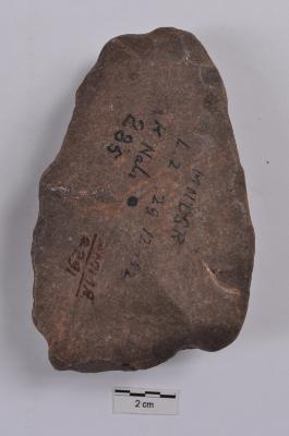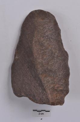 | Description / विवरण | A stone tool with some retouches on the ventral side. |
