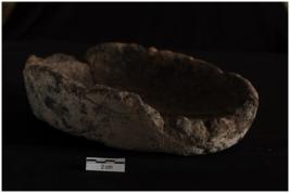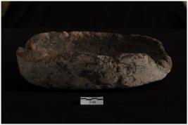 | Description / विवरण | A terracotta object of lamp a complete specimen, oval on plan, plat base, medium high wall. Shallow wick channel, coarse grey brown colour, handmade, well fired. |