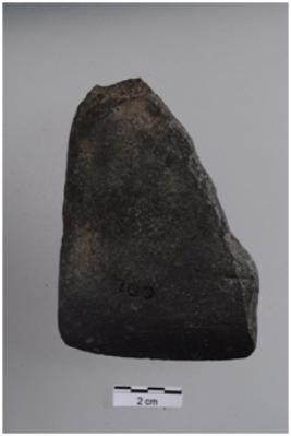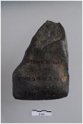 | Description / विवरण | Adze roughly triangular shape, sharp convex working edge, biconvex cross section, highly polished surface |