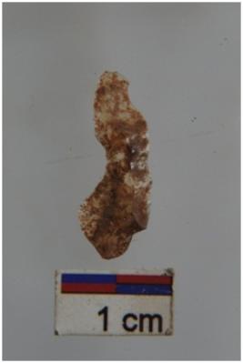 | Description / विवरण | Flake, prominent bulb with striking platform at proximal end, a ridge on dorsal surface. |