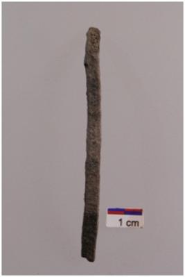 | Description / विवरण | Fragment of a wire, flat surface, rusted surface. |