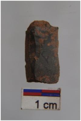 | Description / विवरण | Flake, parallel sided, prominent bulb on ventral surface, a ridge on dorsal surface. |