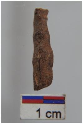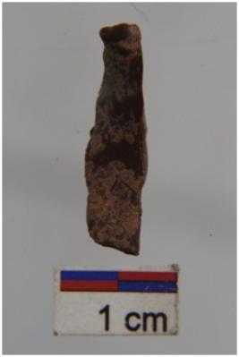 | Description / विवरण | Blade, prominent bulb with striking platform at proximal end, a ridge on dorsal surface, use-ware marks on both working edges. |
