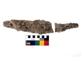 | Description / विवरण | An arrow head made of thin sheet of metal with two barbs and two holes for hafting . |