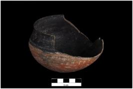 | Description / विवरण | A deep concave sided bowl with an out-turned rounded rim and two shallow grooves on the shoulder. It has a round base. |