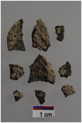 | Description / विवरण | Fragment of a copper object, probably a disc, heavily rusted surface. |