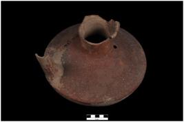 | Description / विवरण | A spouted jar with a sharp. carinated body, round base, high neck and a slightly out-curved rim. The tubular spouted is luted on body above the carination. |