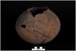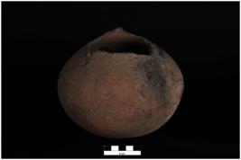 | Description / विवरण | Pot with a globular body, it has shallow grooves on the neck & on the body. |