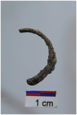 | Description / विवरण | Fragment of a ring, circular cross section,rusted surface. |