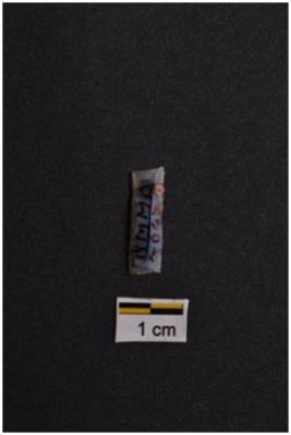 | Description / विवरण | Blade, parallel sided, a ridge on dorsal surface, use-ware marks on both working edges. |