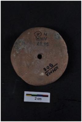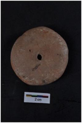 | Description / विवरण | Wheel, handmade, circular with center perforation. |