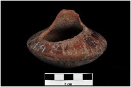 | Description / विवरण | A small squat shaped pot. It is painted on the outer surface in the from panels of longitudinal lines filled with horizontal lines. |