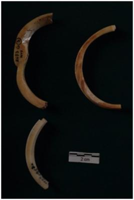 | Description / विवरण | Shell bangle pieces, smooth surface, plain, channel cross section. |