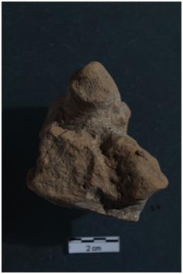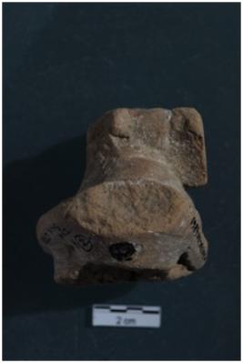 | Description / विवरण | A terracotta object of fragment, rear & legs broken lime coated, possibly an elephant rider indicated by legs. Body broken, medium coarse fabric, well fired, red in colour. |