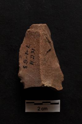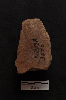 | Description / विवरण | Scraper, prominent bulb with striking platform at proximal end, a ridge on dorsal surface, retouches on convex working edge. |