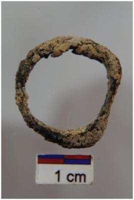 | Description / विवरण | A complete specimen of a ring with Plano-convex section, plain & heavily rusted surface. |