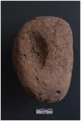 | Description / विवरण | A terracotta skin rubber, irregular, plano convex, very light, whitish in colour. |