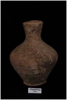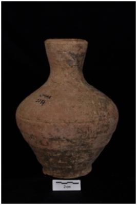 | Description / विवरण | A squat shaped pot with a ring base and a long narrow mouth. |