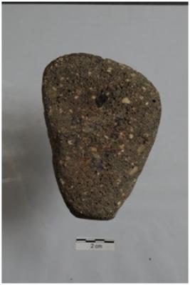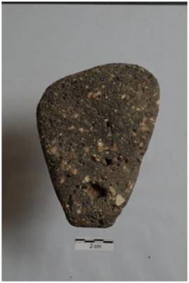 | Description / विवरण | A terracotta object of skin rubber,irregular triangular piece if pumice stone slate coloured porous. Black in colour. |