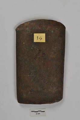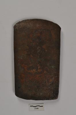 | Description / विवरण | Copper axe, flat, convex working edge, square butt end, rectangular cross-section. |