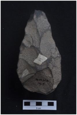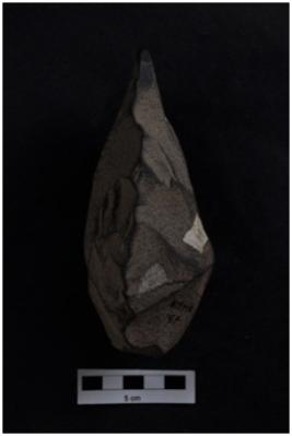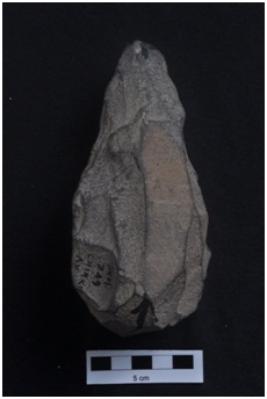 | Description / विवरण | Handaxe, long body, U shaped butt end, pointed another end. |