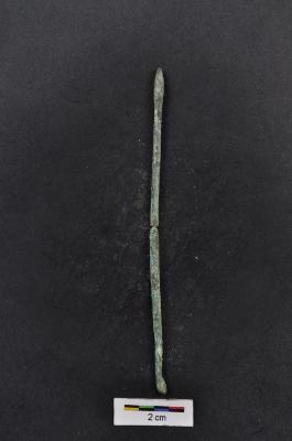 | Description / विवरण | A thin rod, lower tip is thickened, corroded surface, could be used as an awl or antimony rod. |