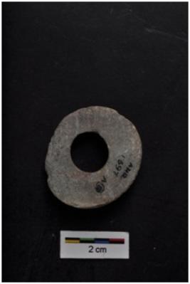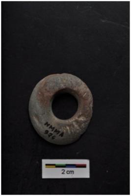 | Description / विवरण | Bead, circular shape, with big center perforation, handmade. |