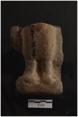 | Description / विवरण | A terracotta object of human figurine, the lower half of male figurine, prepared in single mould, left arm much longer than right, appears to have worn a single piece of cloth around the joins the length of which goes lower than the knees, traces of lime wash and painting in red ochre.Red black in colour, fine fabric, well fired. |